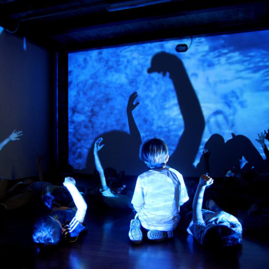 Un laboratorio immersivo dedicato ai bambini che attaverso il movimento e le costruzioni interagiscono con le videoproiezioni.
